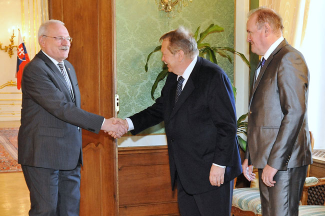 當(dāng)?shù)貢r(shí)間2014年3月10日上午11點(diǎn),斯洛伐克共和國總統(tǒng)I. Gasparovic歡迎IEF經(jīng)濟(jì)俱樂部代表團(tuán)。總統(tǒng)向IEF代表P. Kasalovsky先生表示親切問候。