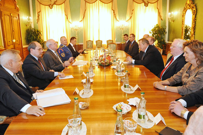 斯洛伐克共和國總統(tǒng)I. Gasparovic(左三)與IEF俱樂部成員進(jìn)行會(huì)談。