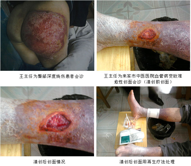 另外,在廣西與各醫(yī)院技術(shù)交流期間,王主任還于2011年1月16日應(yīng)來賓市中醫(yī)醫(yī)院周國榮院長的邀請,到該醫(yī)院為一例下肢血管病變造成的一例難愈性潰瘍創(chuàng)面患者進(jìn)行了會(huì)診和指導(dǎo)。
