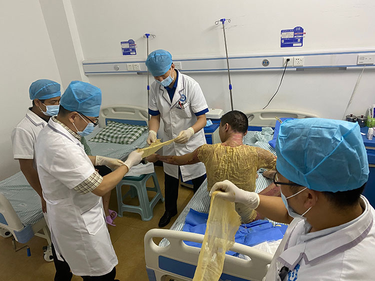 9月1日,北京榮祥再生醫(yī)學(xué)研究所副所長、中國中西醫(yī)結(jié)合學(xué)會燒傷專業(yè)委員會常務(wù)委員、《燒傷創(chuàng)瘍雜志》副總編輯、應(yīng)用燒傷創(chuàng)瘍再生醫(yī)療技術(shù)治療糖尿病足領(lǐng)域?qū)<?、研究員王洪生主任應(yīng)邀來到廣東省四會市慈航醫(yī)院、肇慶市仁愛手外科醫(yī)院分別會診兩例大燒傷面積病人。王教授親自到病房示范清創(chuàng)與換藥,進(jìn)行臨床教學(xué),受到醫(yī)院領(lǐng)導(dǎo)及各醫(yī)護(hù)人員和患者家屬的高度贊揚(yáng)認(rèn)可!