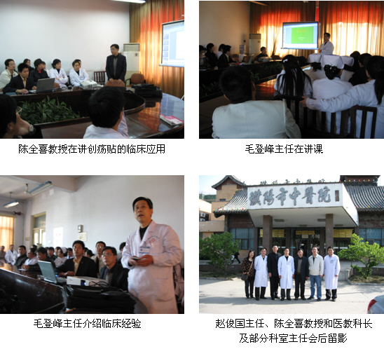 培訓(xùn)班結(jié)束后,趙俊國(guó)主任、李靈敏主任與醫(yī)生們針對(duì)創(chuàng)瘍貼在外科臨床的應(yīng)用情況進(jìn)行了深入的交流,并合影留念。該院領(lǐng)導(dǎo)表示希望以后陳全喜教授等一行與該院加強(qiáng)業(yè)務(wù)聯(lián)系,每年召開一次再生醫(yī)療技術(shù)培訓(xùn)班,進(jìn)一步提高該院的再生醫(yī)療技術(shù)水平。