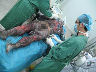 廣西賀州市中醫(yī)院是賀州地區(qū)唯一一家三甲醫(yī)院,同時也是賀州市急救中心所在地。2008年1月5日晚7時20分該醫(yī)院急診收入一例因炮竹爆炸造成全身大面積燒傷的患者。