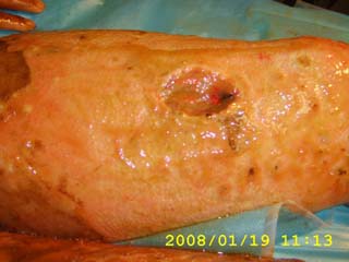 傷后1小時入院時情況                                          傷后2周換藥時情況