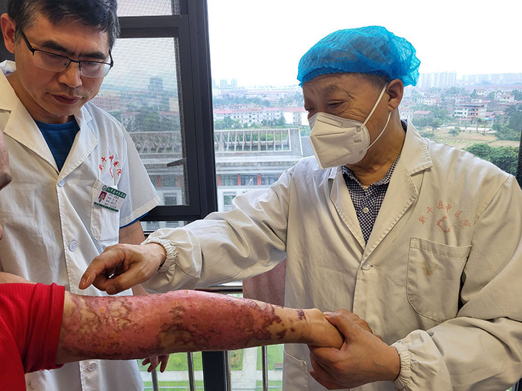 5月12日,中國(guó)中西醫(yī)結(jié)合學(xué)會(huì)燒傷專業(yè)委員會(huì)醫(yī)療部張強(qiáng)主任,受邀到訪武漢大學(xué)人民醫(yī)院經(jīng)開醫(yī)院中醫(yī)瘡瘍科會(huì)診壓瘡、下肢靜脈曲張血管性潰瘍、低溫燙傷等慢創(chuàng)患者,張主任示范了再生醫(yī)療技術(shù)規(guī)范清創(chuàng)、換藥及處理創(chuàng)面的技巧與細(xì)節(jié),會(huì)后同科室張成主任探討了患者的基礎(chǔ)病的治療與營(yíng)養(yǎng)方案,針對(duì)不同的病情制定個(gè)性化治療方案。此次會(huì)診交流活動(dòng),促進(jìn)了中醫(yī)藥傳承創(chuàng)新,提升了中醫(yī)藥在治療瘡瘍科疾病中的作用!