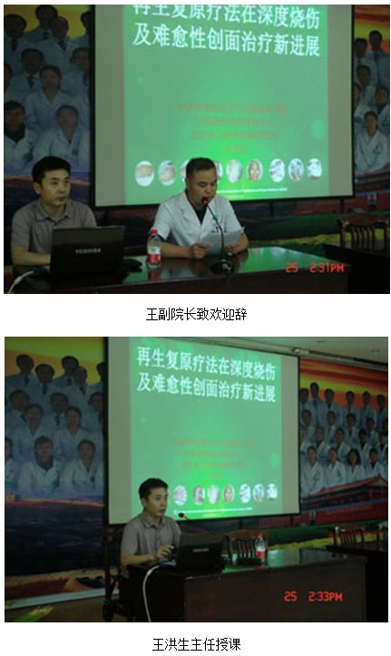 2012年7月25日,應(yīng)六枝特區(qū)人民醫(yī)院邀請,中國中西醫(yī)結(jié)合學(xué)會燒傷專業(yè)委員會常委兼秘書、《中國燒傷創(chuàng)瘍雜志》副總編輯、北京美寶燒傷創(chuàng)瘍研究所副所長、第二臨床研究部主任王洪生研究員來到該院,對該院醫(yī)護(hù)人員進(jìn)行了再生復(fù)原療法在深度燒傷及難愈性創(chuàng)面治療新進(jìn)展的規(guī)范性培訓(xùn)及學(xué)術(shù)交流。