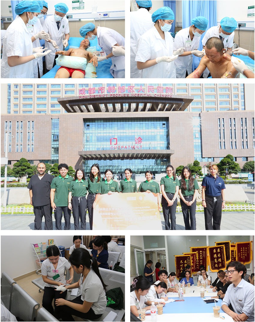 訪學之旅的首站定于成都,這座承載著古蜀文明輝煌歷史的城市。7月5日,師生們走進成都市郫都區(qū)人民醫(yī)院,受到郫都人民醫(yī)院副院長、中國中西醫(yī)結(jié)合學會燒傷專業(yè)委員會顧問付子俊、郫都人民醫(yī)院燒傷創(chuàng)瘍科主任王鄉(xiāng)寧及多位專家的熱情歡迎。在這里,他們不僅親眼見證了再生醫(yī)療技術(shù)的臨床應用奇跡,還通過觀摩美寶濕潤燒傷膏的換藥過程及護理晨間治療,深刻感受到了醫(yī)療創(chuàng)新的力量。此外,系列專題講座更是激發(fā)了學生們對再生醫(yī)療技術(shù)濃厚的興趣與探索欲。