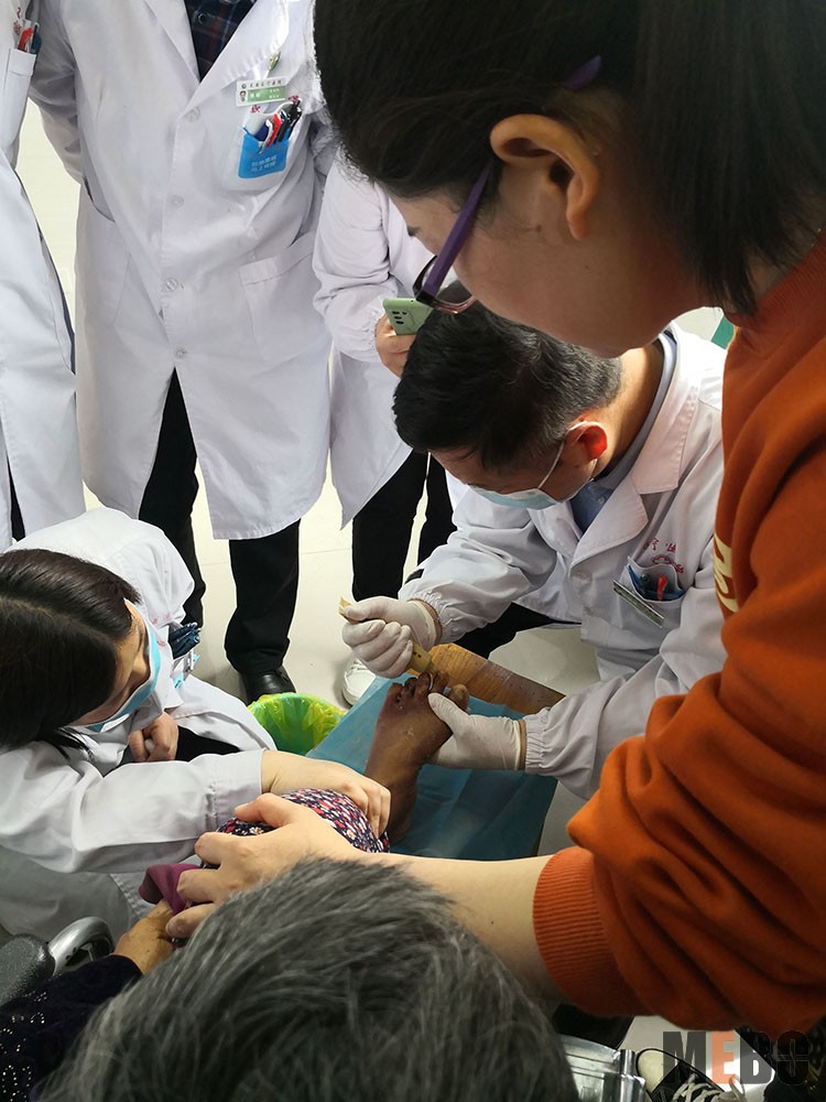 4月19日,中國(guó)中西醫(yī)結(jié)合學(xué)會(huì)醫(yī)療部張強(qiáng)主任應(yīng)邀來(lái)到銅陵市第二人民醫(yī)院對(duì)多例壓瘡患者進(jìn)行現(xiàn)場(chǎng)清創(chuàng)換藥示范,并指導(dǎo)再生醫(yī)療