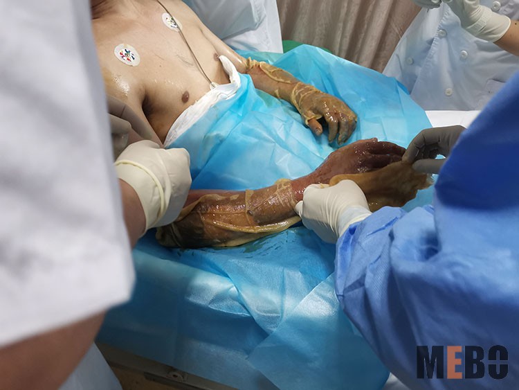 7月19日,重慶市巴南區(qū)中醫(yī)院創(chuàng)瘍科受邀來(lái)到重慶兩江新區(qū)第一人民醫(yī)院普外科,用再生醫(yī)療技術(shù)進(jìn)行兩例爆炸傷患者頭面部以及雙上肢燒傷會(huì)診與交流。