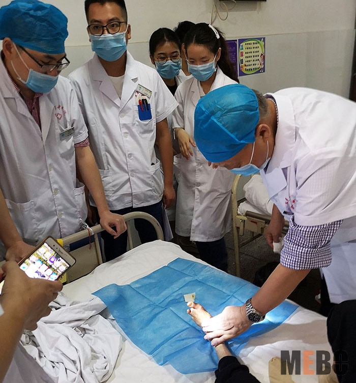 6月24日,北京榮祥再生醫(yī)學(xué)研究所副所長、《中國燒傷創(chuàng)瘍雜志》編委金黨軍主任,應(yīng)邀來到宜春市中醫(yī)院,在鐘主任和彭主任的陪同下為潰瘍、糖尿病足,燒燙傷患者會(huì)診,并給醫(yī)護(hù)人員們現(xiàn)場親自示范再生醫(yī)療技術(shù)規(guī)范換藥流程,患者萬分感激。大家也將平時(shí)臨床換藥中遇到的問題同金主任做了詳細(xì)溝通,大家對金主任指導(dǎo)教學(xué)表示了感謝,相信再生醫(yī)療技術(shù)會(huì)讓更多患者受益!