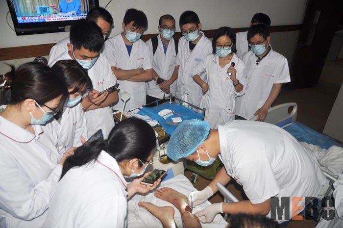 6月24日,重慶省區(qū)組織了重慶市第七人民醫(yī)院,渝北區(qū)人民醫(yī)院,渝北區(qū)中醫(yī)院,巫溪縣中醫(yī)院等16家醫(yī)院近40名醫(yī)護(hù)人員到郫都區(qū)人民醫(yī)院參觀學(xué)習(xí)。參觀團(tuán)參加了該院燒傷創(chuàng)瘍科的交接班,查房,換藥等;接著燒傷創(chuàng)瘍科王主任帶領(lǐng)大家在醫(yī)院會(huì)議室進(jìn)行了再生醫(yī)療技術(shù)的病例交流,就科室發(fā)展及大家最關(guān)心的醫(yī)保、收費(fèi)等問題進(jìn)行了交流,為大家解決了實(shí)際問題和困惑,受到一致好評,也奠定了燒傷創(chuàng)瘍再生醫(yī)療技術(shù)在醫(yī)院的發(fā)展。