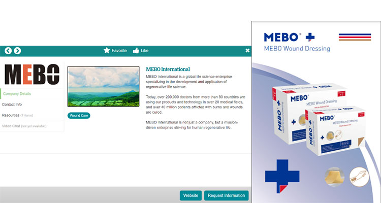 美寶國(guó)際精心設(shè)計(jì)的線上展臺(tái),不僅對(duì)企業(yè)的背景、發(fā)展及成就進(jìn)行了詳盡介紹,同時(shí)還展示了濕潤(rùn)燒傷膏、疤痕軟膏等已在全球應(yīng)用數(shù)十年的創(chuàng)面治療核心產(chǎn)品。值得一提的是,已在美國(guó)成功注冊(cè)的創(chuàng)瘍貼,將作為此次會(huì)議的重磅推介產(chǎn)品,向參會(huì)者進(jìn)行全面展示。