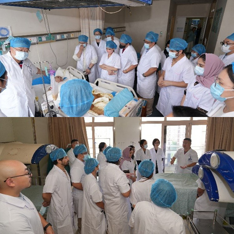 交流訪問團(tuán)首先到達(dá)了中南大學(xué)湘雅三醫(yī)院進(jìn)行學(xué)術(shù)交流及臨床觀摩。在交流過程中,燒傷整形科及燒傷修復(fù)重建亞??频慕淌趥兎窒砹藨?yīng)用再生醫(yī)療技術(shù)治療大面積燒傷患者及多技術(shù)聯(lián)合應(yīng)用的關(guān)鍵思路,引起了雙方的熱烈探討。交流結(jié)束后,訪問團(tuán)一行前往病區(qū)觀摩了不同類型燒傷患者的治療流程。通過臨床觀摩,訪問團(tuán)對再生醫(yī)療技術(shù)的臨床應(yīng)用方法有了更深入的了解。