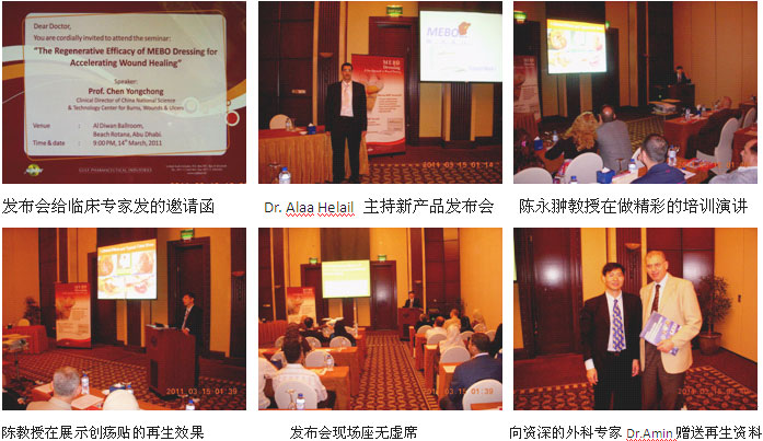二、新產(chǎn)品發(fā)布與應(yīng)用培訓(xùn)會(huì)敲開了新市場(chǎng)之門。2011年3月13日和14日,美寶創(chuàng)瘍貼新產(chǎn)品發(fā)布與應(yīng)用培訓(xùn)會(huì)分別在迪拜和阿布扎比成功舉辦。來自各政府醫(yī)院、私營醫(yī)院、診所的燒傷、整形、普外、婦產(chǎn)、骨科、急診等數(shù)十家醫(yī)院的臨床多學(xué)科的120多名醫(yī)師、護(hù)士參加了美寶創(chuàng)瘍貼的發(fā)布培訓(xùn)會(huì)(迪拜70多名,阿布扎比40多名),陳永翀教授應(yīng)邀以“The Regenerative efficacy of MEBO Dressing for accelerating wound healing”(美寶創(chuàng)瘍貼再生愈合效果)為題,向參會(huì)的臨床專家們講解了創(chuàng)瘍貼的再生愈合創(chuàng)面的機(jī)理、臨床使用方法和令人嘆服的治療效果,演講很受大家的歡迎,大家也為找到一種有效而且方便使用的新產(chǎn)品而感到興奮和激動(dòng)。這次的發(fā)布會(huì)舉辦得非常成功,反響熱烈,達(dá)到和超出了預(yù)期的效果。