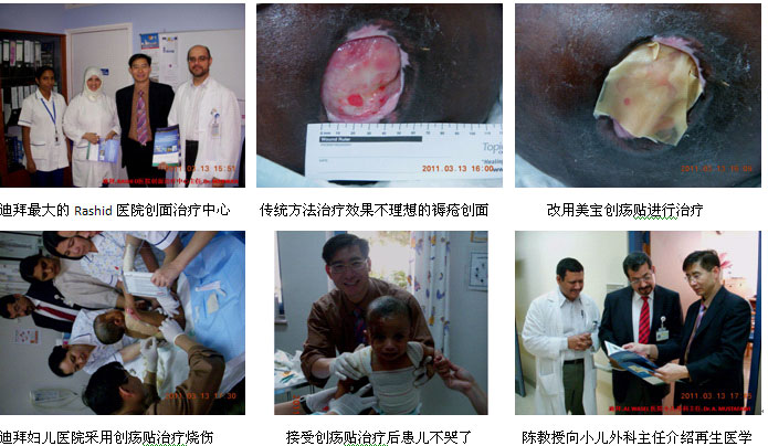 三、理論與實(shí)踐結(jié)合、培訓(xùn)與示范結(jié)合,新產(chǎn)品直接到達(dá)市場(chǎng)終端。在新產(chǎn)品美寶創(chuàng)瘍貼的推廣發(fā)布期間,陳永翀教授先后應(yīng)邀到迪拜最大的政府醫(yī)院------迪拜醫(yī)學(xué)院附屬RASHID醫(yī)院的Wound Care Center(創(chuàng)面治療中心)、迪拜婦兒醫(yī)院小兒外科、阿布扎比的Al AhlinHospital、Lipe Line Clinic向個(gè)醫(yī)院的主任、醫(yī)師和護(hù)士們介紹了美寶創(chuàng)瘍貼的再生醫(yī)學(xué)原理,分別在2例長期不愈合的褥瘡創(chuàng)面、1例小兒燒傷創(chuàng)面和1例11年長期不愈合的創(chuàng)面上講解和示范了美寶創(chuàng)瘍貼的使用方法,使大家更直觀地掌握了正確的使用方法。