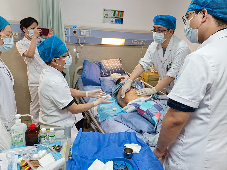 2024年6月5日,中國(guó)中西醫(yī)結(jié)合學(xué)會(huì)燒傷專業(yè)委員會(huì)常務(wù)委員、《中國(guó)燒傷創(chuàng)瘍雜志》副總編輯王洪生,應(yīng)邀到中山市人民醫(yī)院黃圃院區(qū)對(duì)一例難愈性創(chuàng)面的患者進(jìn)行會(huì)診,并親自清創(chuàng)及換藥,示范再生醫(yī)療技術(shù)在臨床的規(guī)范化應(yīng)用,受到醫(yī)患雙方一致好評(píng)!