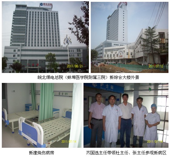 2011年7月7日~16日,應(yīng)皖北煤電總醫(yī)院燒傷整形科齊國選主任的再次邀請,中國中西醫(yī)結(jié)合學(xué)會燒傷專業(yè)委員會委員、北京美寶燒傷創(chuàng)瘍研究所臨床部主任杜福勤教授應(yīng)邀再次前往該院示范指導(dǎo)治療燒傷創(chuàng)瘍患者。經(jīng)過兩周的示范指導(dǎo)和治療,應(yīng)用再生復(fù)原醫(yī)療技術(shù)治療的患者(燒傷患者7例、燒傷植皮后患者2例、燒傷后創(chuàng)面潰瘍1例),患者最大年齡91歲,最小者9個(gè)月。7月14日,安徽省區(qū)張朝軍主任和吳崇巍同志到皖北總院,張朝軍主任和齊國選主任交流了再生復(fù)原技術(shù)和再生產(chǎn)品的引進(jìn)與技術(shù)協(xié)作以及下一步舉辦再生技術(shù)講座等有關(guān)事宜。