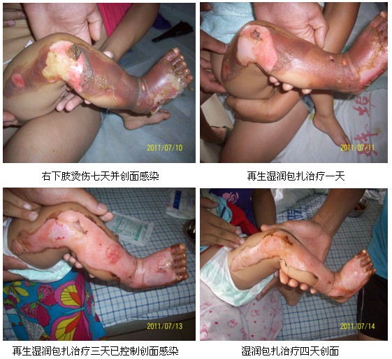 例4  患兒   王某某   9個(gè)月 右下肢燙傷七天