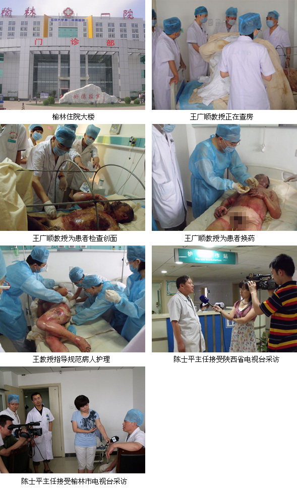 該院燒傷科陳士平主任在接受患者后第一時(shí)間與北京中國(guó)中西醫(yī)結(jié)合學(xué)會(huì)燒傷專業(yè)委員會(huì)請(qǐng)求技術(shù)援助,隨后中國(guó)中西醫(yī)結(jié)合學(xué)會(huì)燒傷專業(yè)委員會(huì)王廣順教授、陜西省中西醫(yī)結(jié)合學(xué)會(huì)燒傷專業(yè)委員會(huì)劉華主任及榆林地區(qū)技術(shù)主管閆鑫三人連夜凌晨?jī)牲c(diǎn)多趕到了榆林市第一醫(yī)院。在查看燒傷病人后,王廣順教授就有關(guān)燒傷救治方案做了具體的安排部署,要求統(tǒng)一服從醫(yī)療救治小組的安排,普外科、內(nèi)科、急診科、醫(yī)技科、藥劑科以及后勤保障科等積極配合,為醫(yī)療救治提供足夠的人員保障;醫(yī)技科,藥劑科確保臨床所需;后勤部門做好后勤保障工作。目前該批病人雖處于危險(xiǎn)期,但經(jīng)過及時(shí)搶救病情相對(duì)穩(wěn)定。此次事件陜西電視臺(tái)、榆林電視臺(tái)在第一時(shí)間做了報(bào)道,我們也將繼續(xù)關(guān)注這批病人的救治情況。