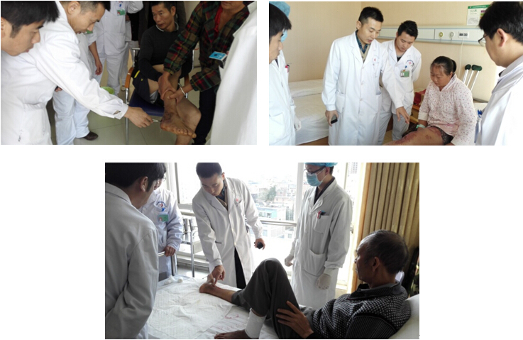 培訓(xùn)結(jié)束后王主任與各科醫(yī)生到科室為病人進行會診,并針對各病例進行病情分析指導(dǎo)治療。