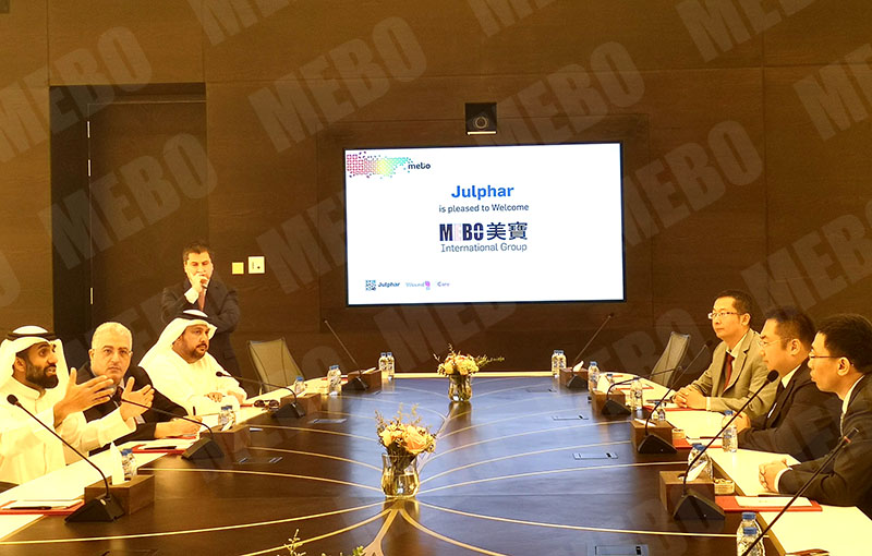 隨后,Julphar董事局主席Sheikh Saqer率副主席及高管團(tuán)隊(duì)與徐鵬主席率領(lǐng)的美寶團(tuán)隊(duì)就美寶集團(tuán)與Julphar的商務(wù)合作開(kāi)展了深入的會(huì)談,回顧了2009年以來(lái)雙方在商業(yè)合作領(lǐng)域取得成就,剖析了近年來(lái)市場(chǎng)發(fā)展遇到的問(wèn)題及挑戰(zhàn),會(huì)談達(dá)成多項(xiàng)共識(shí)。Sheikh Saqer向徐鵬介紹了3名新任董事會(huì)成員,他指出過(guò)去兩年多來(lái)Julphar 的發(fā)展遇到一系列問(wèn)題,包括與美寶集團(tuán)及其高層之間的交流溝通,并提出了一系列的改進(jìn)措施與建議。他強(qiáng)調(diào)未來(lái)必須建立董事局級(jí)別定期溝通渠道,保證雙方合作項(xiàng)目的順利執(zhí)行,也對(duì)未來(lái)雙方深化合作、再次騰飛充滿了信心。徐鵬提出精誠(chéng)合作、互信共贏是雙方30年來(lái)緊密合作的基礎(chǔ),雙方應(yīng)在醫(yī)藥業(yè)務(wù)加深加強(qiáng)合作外,還要加大在國(guó)際交流、國(guó)際高端學(xué)術(shù)活動(dòng)、社會(huì)企業(yè)責(zé)任等領(lǐng)域的深度合作,共同打造美寶-Julphar品牌。同時(shí)也特別指出雙方需要重視并探尋美寶技術(shù)產(chǎn)品在中東及非洲地區(qū)罕見(jiàn)病(如先天性皮膚缺損)的應(yīng)用契機(jī)。