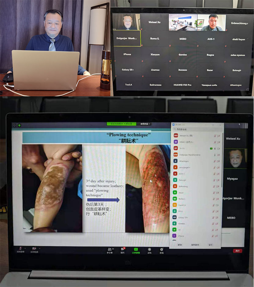 首先美寶集團蒙古國市場經(jīng)理連線會場對本次活動內(nèi)容進行了說明,隨后蒙古國市場經(jīng)理Bumaa宣布培訓(xùn)活動開始。由于本次聽取授課的人員大部分為第一次接觸再生醫(yī)學(xué)療法,因此付子俊教授對再生醫(yī)學(xué)的機理、治療方法等基礎(chǔ)理論進行了深入淺出的講解。在病例分享環(huán)節(jié),付子俊教授充分展示了再生醫(yī)學(xué)針對燒燙傷、糖尿病足潰瘍、壓瘡、婦科病癥和斷指等臨床治療方法及治療效果,并著重分享了微粒皮種植配合再生醫(yī)學(xué)的應(yīng)用方法,獲得參會人員一致好評。