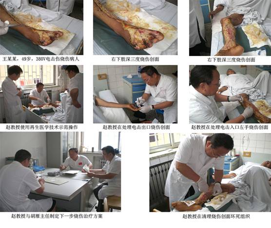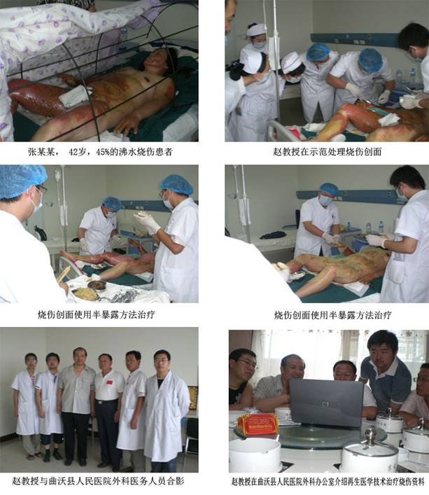 進入盛夏的8月份,北京燒傷創(chuàng)瘍瘍研究所副所長趙瑞慶教授應山東聊城中醫(yī)院、山東牟平人民醫(yī)院、山西襄汾縣中醫(yī)院、山西省曲沃縣人民醫(yī)院、山西省洪洞縣中醫(yī)院的邀請,先后搶救了兩例大面積燒傷患者,其中一例高壓電電擊燒傷患者,使用再生醫(yī)學技術(shù)取得了良好的臨床治療效果,同時,趙瑞慶教授還指導當?shù)蒯t(yī)院使用再生醫(yī)學技術(shù)治療難愈合傷口也收到了滿意的療效。