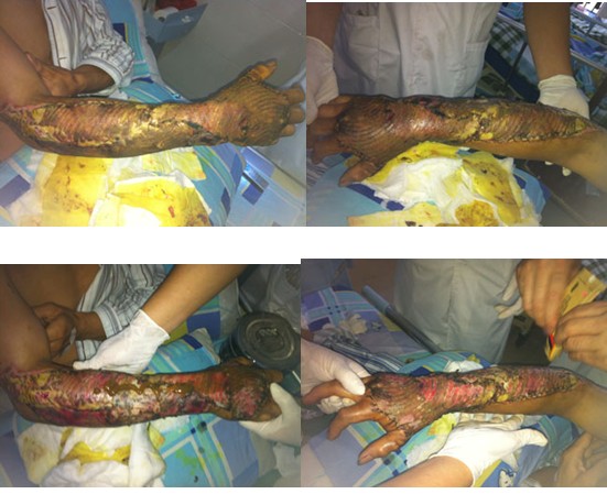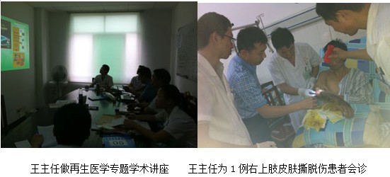 2012年9月26日下午三點,應(yīng)該院外科文振偉主任的邀請,中國中西醫(yī)結(jié)合學(xué)會燒傷專業(yè)委員會常委兼秘書、《中國燒傷創(chuàng)瘍雜志》副總編輯、北京美寶燒傷創(chuàng)瘍研究所副所長、第二臨床研究部主任王洪生研究員來到該院到該科作學(xué)術(shù)和技術(shù)上的交流和指導(dǎo),參會人員為該科室全體醫(yī)護人員共10余人。會議在該院外科室舉行, 王主任通過大量典型的臨床病例圖片及錄像資料詳細的介紹了再生醫(yī)療技術(shù)對深度燒傷及難愈性創(chuàng)面作用機理、再生復(fù)原療法對各種不同深度燒傷及各種難愈性創(chuàng)面治療方法和規(guī)范操作時的注意事項等,在授課過程之中大家認真聽講,并在授課后大家對王主任講課內(nèi)容進行了深入的探討,王主任根據(jù)大家提出的問題有針對性的進行了講解,會后王主任對該科一例右上肢撕脫傷病人進行會診,王主任還親自為病人換藥,進行了現(xiàn)場的生動有效的臨床指導(dǎo)示范。