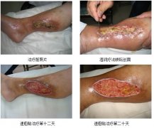 病人叫孫××,現(xiàn)年64歲,是鄭州市中原區(qū)構(gòu)趙鄉(xiāng)孫莊村人。老人說:“我患的深部靜脈炎十三年前在河南省××醫(yī)院做的手術(shù),術(shù)后每年這地方都流水,到省××醫(yī)院住20天就好。每年到陰歷11月份就開始,形成規(guī)律了。今年又爛了,我又到省××醫(yī)院住院花了四萬多住院治療,這一回治療了四個月零三天,還做了一回手術(shù),還是長不住口。我老頭是個村醫(yī),今年春上在鄉(xiāng)里聽陳專家講課后,我從省××醫(yī)院出院來到中原醫(yī)院燒傷科治療。我是陰歷3月16日住院的,今天是陰歷4月14日,住院28天,腿就好了。”說著她從病床上下來走了走,“好了,一點也不痛了。”并讓我們看了看創(chuàng)面。她說:“我花了醫(yī)療費9600元治好了我的腿,我感謝中原醫(yī)院的醫(yī)生,感謝美寶速愈貼的好療效。”