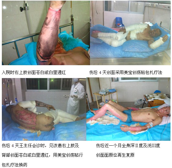 2011年4月11日~12日,廣東省開平市中心醫(yī)院燒傷外一科先后收住1例成人大面積深度燒傷患者和1例小兒大面積燒傷患兒,這2例大面積燒傷患者入院后全程采用燒傷皮膚原位再生復(fù)原技術(shù)治療,2例患者于傷后5天時(shí)出現(xiàn)病情危重,該醫(yī)院立即請求中國中西醫(yī)結(jié)合學(xué)會燒傷專業(yè)委員會常委、中國燒傷創(chuàng)瘍雜志社副總編輯、北京燒傷創(chuàng)瘍研究所副所長、臨床部王洪生主任到該醫(yī)院會診,王主任于2011年4月16日下午近17時(shí)從菲律賓馬尼拉乘機(jī)到達(dá)廣州白云國際機(jī)場后,不顧長途勞頓直接從機(jī)場于當(dāng)晚趕赴開平市中心醫(yī)院為該院2例大面積燒傷患者會診,對2例大面積燒傷患者的救治工作進(jìn)行指導(dǎo),經(jīng)過該醫(yī)院燒傷外科醫(yī)護(hù)人員對2例大面積燒傷患者近1個月的精心治療和王洪生主任及時(shí)、正確的會診指導(dǎo),該醫(yī)院利用燒傷皮膚原位再生復(fù)原技術(shù)使這2例大面積燒傷患者得到了成功治救治,具體如下: