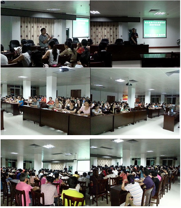 2013年3月25號,應(yīng)扶綏縣人民醫(yī)院副院長李海華邀請,中國中西醫(yī)結(jié)合學(xué)會燒傷專業(yè)委員會常委兼秘書、《中國燒傷創(chuàng)瘍雜志》副總編輯、北京燒傷創(chuàng)瘍研究所副所長、臨床部主任王洪生研究員到該院進(jìn)行 “再生療法在難愈性創(chuàng)瘍創(chuàng)面治療新進(jìn)展”專題臨床學(xué)術(shù)講座。晚上七點(diǎn),在醫(yī)院會議室,全院各科室主管和醫(yī)護(hù)人員共130余人到會聆聽王主任的專題講座。該醫(yī)院副院長李海華全程主持了會議。王主任的專題學(xué)術(shù)報告分為三部分,在第一部分概述中,王主任重點(diǎn)講述了我國著名生命科學(xué)家、醫(yī)學(xué)家徐榮祥教授近年來在人體再生復(fù)原科學(xué)研究領(lǐng)域所取得的重大臨床及實(shí)驗(yàn)研究成果,2012年分別發(fā)表在《英國外科雜志》和《國際燒傷雜志》兩篇綜述中有關(guān)磺胺嘧啶銀及含銀敷料等外用銀制劑用于急性創(chuàng)傷和燒傷創(chuàng)面會造成創(chuàng)面愈合延遲、增加疼痛和感染率的最新觀點(diǎn),以及再生復(fù)原療法的概念及其解決難愈性創(chuàng)面治療的機(jī)理;第二部分重點(diǎn)介紹了再生復(fù)原療法創(chuàng)面規(guī)范的處理方法 ;第三部分重點(diǎn)講述了再生復(fù)原療法在各類難愈性創(chuàng)瘍創(chuàng)面治療要點(diǎn)及典型病例介紹,并結(jié)合大量的病例圖片講解了各類深度燒傷創(chuàng)面、再生醫(yī)療技術(shù)在骨外露、鋼板外露、糖尿病足、動脈閉塞癥、撕脫傷、斷肢再生、手術(shù)切口感染、褥瘡等各種難愈合創(chuàng)面的治療過程及要點(diǎn)。講座結(jié)束前是王主任解答醫(yī)護(hù)人員的提問,提問延續(xù)到了10:30分,仍然有許多醫(yī)護(hù)人員要提問,氣氛非常熱烈,最后因王主任需為該醫(yī)院普外科及骨科收治的難愈性創(chuàng)面患者會診,學(xué)術(shù)講座才結(jié)束。講課結(jié)束后,王主任在該醫(yī)院主管副院長李海華及醫(yī)務(wù)科長、普外科主任及骨科主任等領(lǐng)導(dǎo)專家陪同下,先后深入該醫(yī)院普外科為一例肛瘺合并陰囊潰瘍患者、一例背部因皮脂腺囊腫切除術(shù)后感染后慢性潰瘍患者及到骨科病房為一例骶尾部4期巨大潰瘍性褥瘡患者等難愈性創(chuàng)面患者進(jìn)行了會診及臨床指導(dǎo)。時間一直延續(xù)到11點(diǎn),由于時間已晚,加上王主任還要趕兩百多公里的路程到龍州縣,所以李副院長和醫(yī)生們懷著歉意與不舍送王主任上車。李副院長希望王主任再到廣西時,一定要再來扶綏。