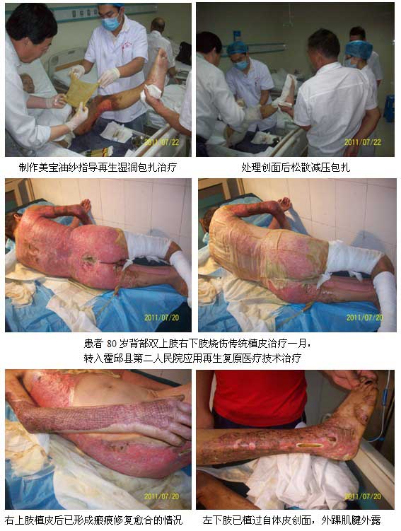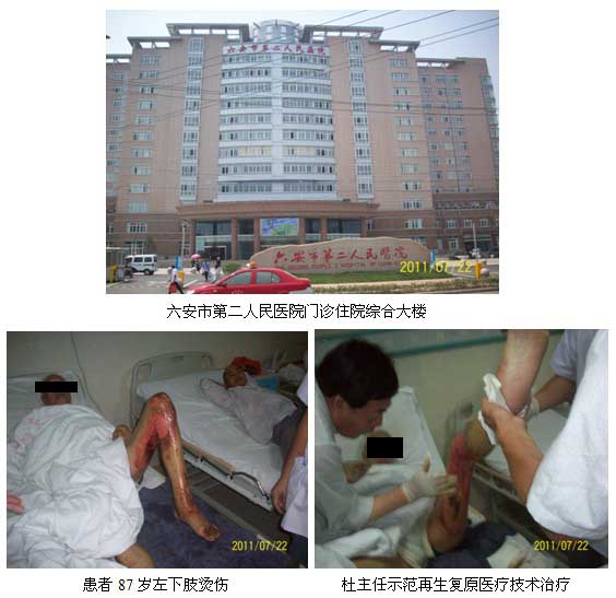 7月22日,杜主任走訪了六安市第二人民醫(yī)院外科、第一人民醫(yī)院燒傷整形科,與二院涂蒼慨主任深入交流再生復(fù)原醫(yī)療技術(shù)的發(fā)展和臨床實(shí)踐情況,下午為一名87歲老年燒傷患者示范再生復(fù)原醫(yī)療技術(shù)換藥。同時還走訪了一院燒傷整形科和趙遵江主任交流了再生復(fù)原醫(yī)療技術(shù)最近的研究成果和國內(nèi)外臨床實(shí)踐可喜的成果,達(dá)到了深入推廣再生復(fù)原醫(yī)療技術(shù)的目的。