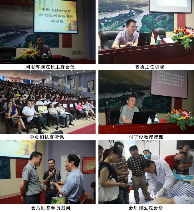 都江堰市中醫(yī)院劉志輝副院長總結(jié)會議,宣布學(xué)習(xí)班圓滿結(jié)束。會議結(jié)束后很多學(xué)員們圍繞著付子俊教授不斷請教問題,付教授一一詳細(xì)解答。都江堰市405醫(yī)院石剛院長則迫不及待的申請付教授立即到該院會診一創(chuàng)面難愈性患者,付子俊教授不顧講課疲憊,在石院長和醫(yī)護(hù)人員陪同下立即到該院會診了患者,并認(rèn)真制定了治療方案。