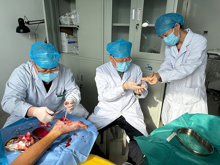 11月19日,應(yīng)上猶縣人民醫(yī)院普外燒傷創(chuàng)面修復(fù)科陳醫(yī)生的邀請(qǐng),《中國燒傷創(chuàng)瘍雜志》編委、燒傷創(chuàng)瘍?cè)偕t(yī)療技術(shù)臨床專家金黨軍和江西省總陳立新以及贛州市場負(fù)責(zé)人肖曉春,來到上猶縣人民醫(yī)院普外燒傷創(chuàng)面修復(fù)科會(huì)診了一例深三度燒傷患者,獲得醫(yī)護(hù)人員和患者的高度評(píng)價(jià)和認(rèn)可,并就再生醫(yī)療技術(shù)在臨床的應(yīng)用進(jìn)行了深入交流。