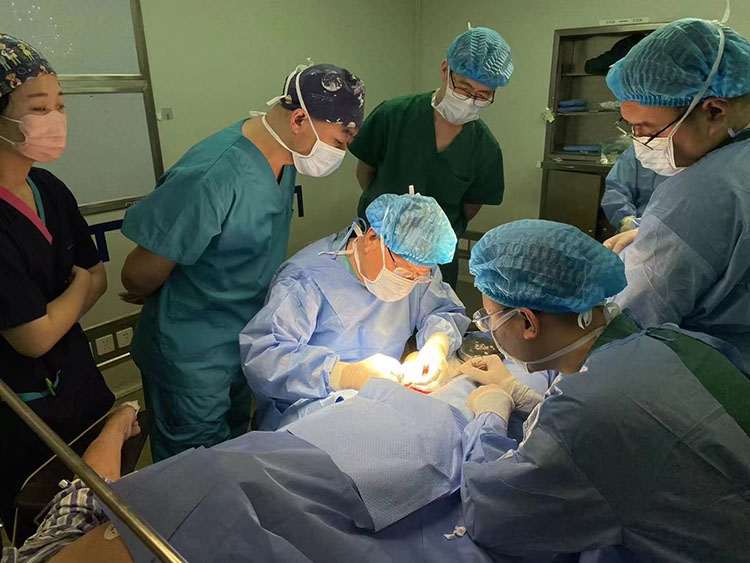 3月3日,應(yīng)溆浦縣城南醫(yī)院吳勇華主人邀請,《中國燒傷創(chuàng)瘍雜志》編委、燒傷創(chuàng)瘍再生醫(yī)療技術(shù)臨床專家金黨軍,到科室會(huì)診一腿部三度燒傷患者,討論患者保肢治療方案,并親自使用再生醫(yī)療技術(shù)為患者換藥。吳勇華主任多年以來堅(jiān)持使用再生醫(yī)療技術(shù)治療燒傷和慢創(chuàng)患者,通過學(xué)會(huì)和聯(lián)盟將省級和國家級的先進(jìn)技術(shù)引入醫(yī)院并成熟應(yīng)用,將造福了地區(qū)廣大患者。