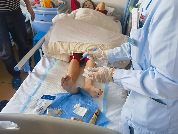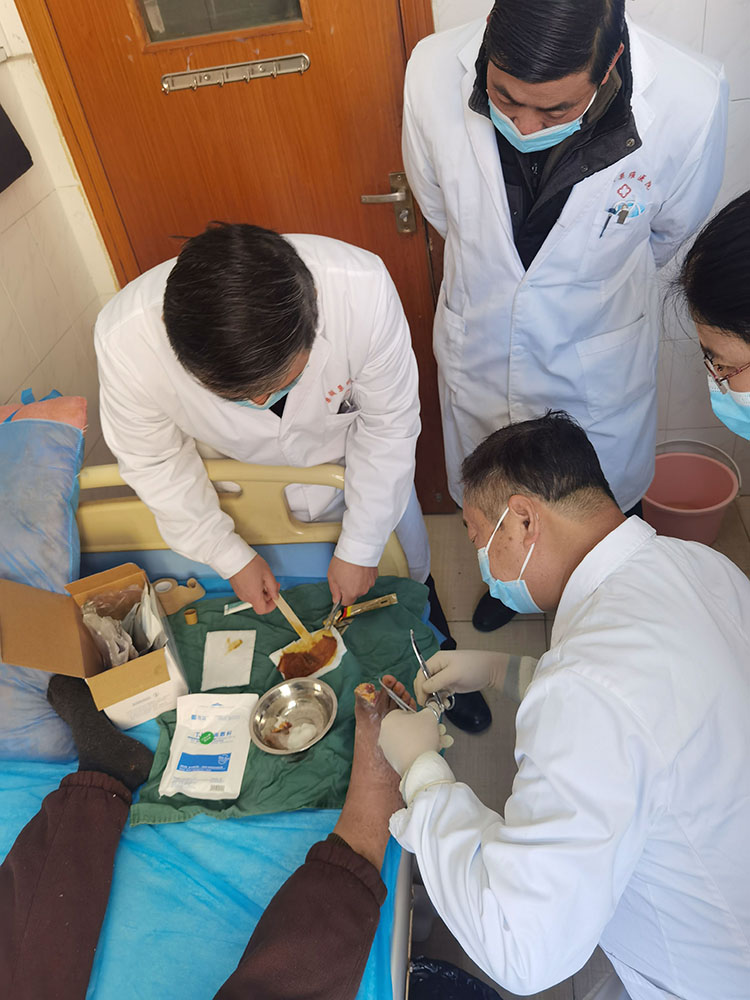 2024年3月8日,應(yīng)廣東東莞市濱海灣中心醫(yī)院廖主任邀請,中國中西醫(yī)結(jié)合學(xué)會(huì)燒傷專業(yè)委員會(huì)常務(wù)委員,《中國燒傷創(chuàng)瘍雜志》副總編輯王洪生,到科室對多位糖尿病足和壓瘡患者進(jìn)行了查房,親自示范規(guī)范應(yīng)用再生醫(yī)療技術(shù)對相關(guān)進(jìn)行慢性創(chuàng)面的處理,并對每個(gè)不同創(chuàng)面情況都提出了合理的治療方案,得到了醫(yī)護(hù)人員和患者家屬的一致好評!