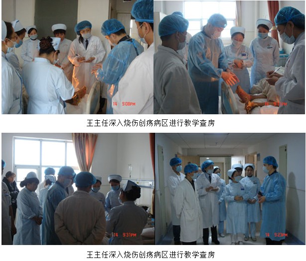 2013年4月15日上午9時(shí),王主任應(yīng)邀再次來到該醫(yī)院燒傷創(chuàng)瘍手外科病房對在該科室住院的燒傷創(chuàng)瘍患者進(jìn)行教學(xué)查房,并應(yīng)邀親自為1例雙足及小腿深度燒傷患者進(jìn)行清創(chuàng)換藥,向該科室的醫(yī)護(hù)人員展示再生醫(yī)療技術(shù)規(guī)范的創(chuàng)面清創(chuàng)換藥技術(shù),帶教結(jié)束后,王主任在該科室會議室又對該科室的醫(yī)護(hù)人員進(jìn)行再生復(fù)原療法在特重度燒傷系統(tǒng)治療要點(diǎn)進(jìn)行技術(shù)培訓(xùn)和交流。通過此次培訓(xùn),該科室的全部醫(yī)護(hù)人員基本掌握了再生醫(yī)療技術(shù)的規(guī)范化操作,對該科室的發(fā)展起到了重要作用。