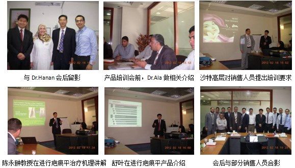 自2011年疤痕平軟膏在中東地區(qū)數(shù)個(gè)國(guó)家拿下CPP(Certificate of Pharmaceutical Product)藥品證書(shū)之后,美寶疤痕平已正式以藥品身份進(jìn)入醫(yī)院銷(xiāo)售渠道。在美寶國(guó)際市場(chǎng)集團(tuán)及其合作伙伴海灣Julphar藥廠(chǎng)積極的組織安排下,分別在沙特三大城市吉達(dá)、達(dá)曼、利雅得成功舉辦產(chǎn)品發(fā)布會(huì),共計(jì)有來(lái)自各市醫(yī)療機(jī)構(gòu)的440名臨床醫(yī)護(hù)人員參加了產(chǎn)品發(fā)布會(huì)。其間,訪(fǎng)問(wèn)了當(dāng)?shù)刂攸c(diǎn)醫(yī)生13名,會(huì)診病例5名,直接培訓(xùn)當(dāng)?shù)匾痪€(xiàn)銷(xiāo)售人員25名。培訓(xùn)團(tuán)隊(duì)由來(lái)自中國(guó)燒傷創(chuàng)瘍科技中心臨床部主任、北京榮祥再生醫(yī)學(xué)研究所副所長(zhǎng)、北京中西醫(yī)結(jié)合學(xué)會(huì)燒傷專(zhuān)業(yè)委員會(huì)副主任委員、中國(guó)燒傷創(chuàng)瘍雜志社副社長(zhǎng)的陳永翀教授及美寶國(guó)際集團(tuán)產(chǎn)品部主管舒葉組成。培訓(xùn)內(nèi)容包括疤痕治療選擇、疤痕形成原因、疤痕平組成成分、再生醫(yī)學(xué)-抗疤痕機(jī)理、疤痕平臨床使用方法、美寶疤痕平聯(lián)合無(wú)創(chuàng)或有創(chuàng)方法治療各種疤痕的典型病例介紹等。具體情況報(bào)道如下: