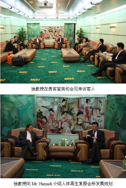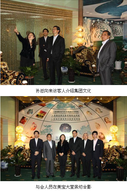 10月22日上午,美寶國(guó)際集團(tuán)董事局主席徐榮祥教授在集團(tuán)貴賓室親切會(huì)見(jiàn)Mr. Hamadi一行將本次訪問(wèn)活動(dòng)推向了高潮。徐教授表示美寶印尼市場(chǎng)一直以來(lái)都是美寶集團(tuán)最為關(guān)注的市場(chǎng)區(qū)域之一,對(duì)雙方所達(dá)成的五年規(guī)劃、新產(chǎn)品發(fā)展計(jì)劃及新的合作模式表示祝賀,并向客人全面通報(bào)了近年來(lái)美寶在癌癥研究及再生會(huì)所等方面取得的重大進(jìn)展,并提出印尼將是美寶人體再生復(fù)原俱樂(lè)部全球推廣計(jì)劃的基地之一。Mr. Hamadi首先對(duì)于徐教授的介紹表示感謝,對(duì)于美寶在癌癥研究方面取得的成就表示祝賀,同時(shí)對(duì)于徐教授提出的計(jì)劃連聲表示贊同,希望回到印尼后能夠盡快啟動(dòng)這項(xiàng)計(jì)劃,希望自己盡快在印尼享受到人體再生復(fù)原技術(shù)帶來(lái)的養(yǎng)生效果。