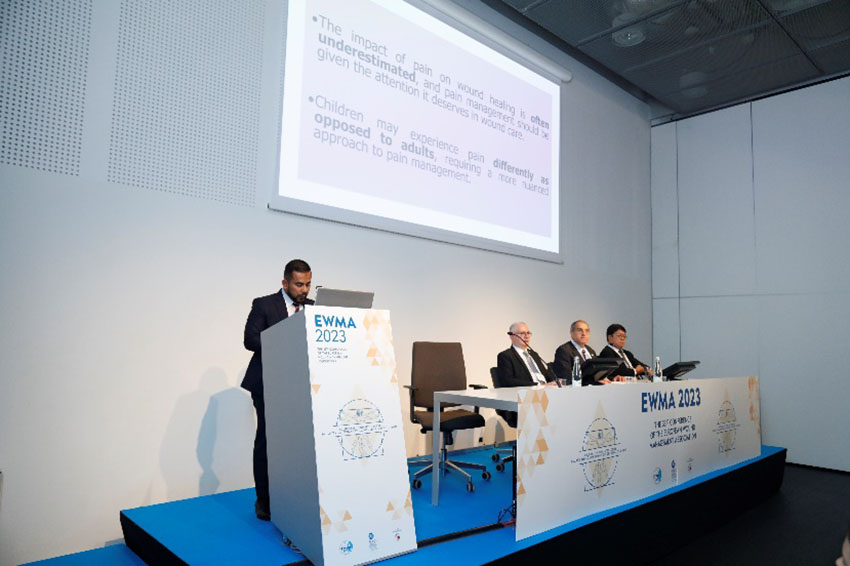 研討會首位講者是馬來西亞Raja Perempuan Zainab II醫(yī)院的創(chuàng)面管理科主任Mohd Zurairie,他以“提高小兒外傷創(chuàng)面治療體驗(yàn):在治療中減少疼痛的策略”為主題發(fā)表了演講,深入淺出地介紹了再生醫(yī)療技術(shù)減輕疼痛的機(jī)制與作用。