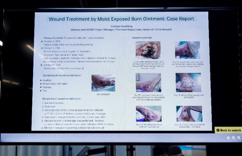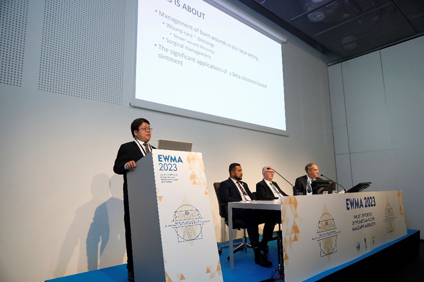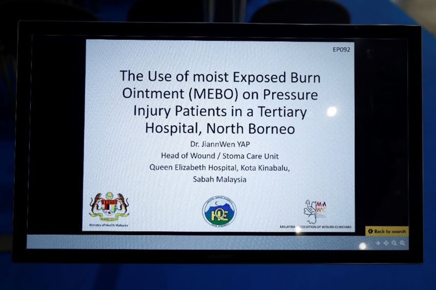 除演講外,在海報(bào)展示中,來自蒙古Venera VIP Clinic醫(yī)院的Solongo Oyunbileg,馬來西亞Raja Perempuan Zainab II醫(yī)院的Mohd Zurairie,以及馬來西亞皇后伊麗莎白醫(yī)院的Jiann Wen Yap,分別提交了題為“利用濕潤燒傷膏治療傷口:1例病例報(bào)告”、“聯(lián)合應(yīng)用濕潤燒傷膏與硅膠非粘性泡沫敷料治療小兒下肢遠(yuǎn)端創(chuàng)傷” 、“使用濕潤燒傷膏治療壓力性損傷”的電子海報(bào), 深受現(xiàn)場參會者的好評。