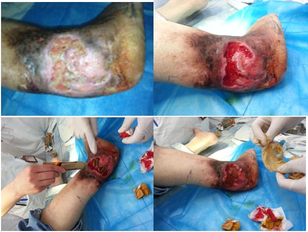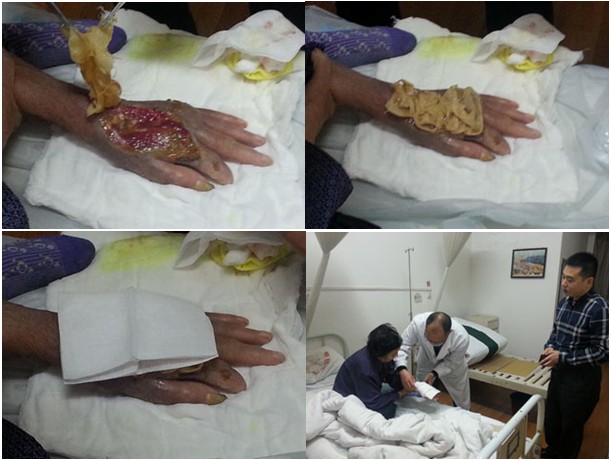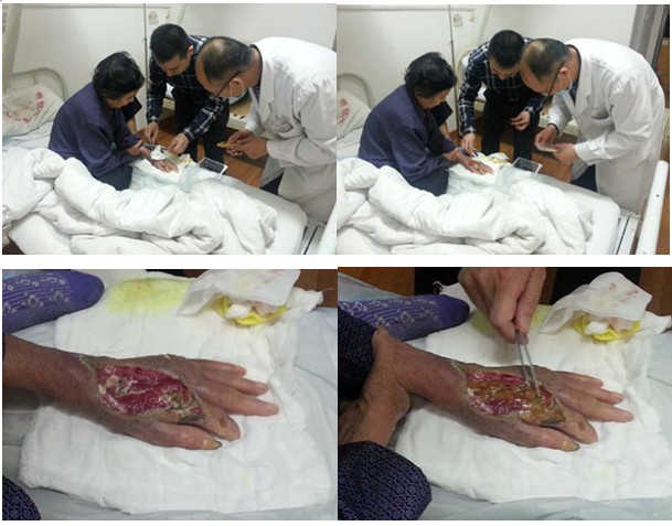 2013年3月26下午至27日上午,受北海市中醫(yī)院的邀請(qǐng),王洪生主任到該院普外、泌尿、燒傷創(chuàng)瘍外科進(jìn)行“再生療法在褥瘡、下肢靜脈曲張、糖尿病足等難愈性創(chuàng)面治療新進(jìn)展”專(zhuān)題臨床學(xué)術(shù)講座。并為該科收治的1例糖尿病足,4例老年4度潰瘍性褥瘡患者,1例70歲老年男性慢性潰瘍患者右下肢大隱靜脈曲張并骨髓炎致6年余不愈、廣西幾家最大醫(yī)院評(píng)定要截肢的患者進(jìn)行了會(huì)診和示范清創(chuàng)手術(shù)。26日下午4點(diǎn),在該醫(yī)院普外、泌尿、燒傷創(chuàng)瘍外科史國(guó)恩副主任醫(yī)師,蔡漢章副主任醫(yī)師及主管醫(yī)生等醫(yī)護(hù)人員的帶領(lǐng)下,對(duì)在該醫(yī)院就診和住院的上述患者進(jìn)行了會(huì)診和臨床指導(dǎo),結(jié)合會(huì)診對(duì)該科室的醫(yī)護(hù)人員進(jìn)行了再生復(fù)原療法在褥瘡,糖尿病足及脈管炎等難愈性創(chuàng)面臨床規(guī)范化應(yīng)用技術(shù)培訓(xùn),并強(qiáng)調(diào)了對(duì)創(chuàng)面徹底清創(chuàng)的重要性、結(jié)合再生療法治療才能解決創(chuàng)面愈合的難題。27號(hào)上午,王主任在1例因右下肢大隱靜脈曲張并骨髓炎6年余不愈的慢性潰瘍患者家屬的強(qiáng)烈邀請(qǐng)下,還親自帶領(lǐng)該科副主任等醫(yī)護(hù)人員給這患者做了示范清創(chuàng)手術(shù)。