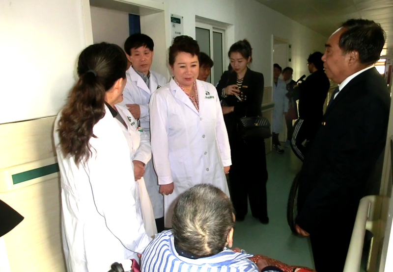 參觀完門診區(qū),來(lái)到二樓綜合內(nèi)科病區(qū),朱登玲副院長(zhǎng)介紹了病區(qū)的發(fā)展情況,重點(diǎn)介紹了新開展的醫(yī)養(yǎng)結(jié)合項(xiàng)目,該項(xiàng)目是在治療各類內(nèi)科疾病的基礎(chǔ)上,新增以慢性重癥患者為主而開展的,通過(guò)一年多的探索與實(shí)踐,已經(jīng)成為內(nèi)科病區(qū)的一大特色,并成為當(dāng)?shù)貙W(xué)習(xí)典范,得到了政府主管部門的肯定,多次接待政府組織的其他醫(yī)療機(jī)構(gòu)的參訪和經(jīng)驗(yàn)交流,并取得了一定的社會(huì)信譽(yù)。李俐走進(jìn)病房與老人進(jìn)行親切的交談,了解醫(yī)養(yǎng)結(jié)合服務(wù)情況,當(dāng)老人們紛紛表示非常滿意的時(shí)候,李俐感到非常欣慰。