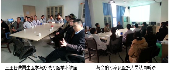 2012年11月28日,應(yīng)該院外一、外二病區(qū)梅禮強主任、徐偉主任的邀請,當(dāng)日下午3點,中國中西醫(yī)結(jié)合學(xué)會燒傷專業(yè)委員會常務(wù)兼秘書、《中國燒傷創(chuàng)瘍雜志》副總編輯、北京美寶燒傷創(chuàng)瘍研究所副所長、第二臨床研究部主任王洪生研究員來到該院,為二兩個科室的醫(yī)護(hù)人員做了一場生動的學(xué)術(shù)報告。王洪生研究員先以“再生醫(yī)療技術(shù)在增生性瘢痕防治新進(jìn)展”為題先做一個精彩的演講,緊接著應(yīng)科室徐偉主任的邀請,又做了“再生醫(yī)療技術(shù)在糖尿病足、褥瘡、骨外露、鋼板外露、手術(shù)切口感染、難愈合創(chuàng)面及大面積深度燒傷的臨床規(guī)范化應(yīng)用”精彩演講,會場鴉雀無聲,在場的醫(yī)護(hù)人員們都為之震撼,會議一直持續(xù)到晚上6點多。會議結(jié)束后,醫(yī)護(hù)人員都不舍得離場,提出了很多臨床中遇到的問題,王洪生主任都耐心的解答。