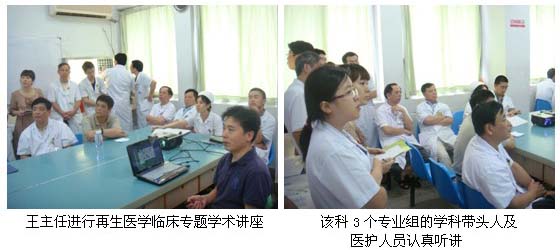 2011年7月25日下午四點半,中國燒傷創(chuàng)瘍雜志社副總編輯、中國中西醫(yī)結(jié)合學(xué)會燒傷專業(yè)委員會常委兼秘書、北京美寶燒傷創(chuàng)瘍研究所副所長、臨床研究部主任王洪生研究員應(yīng)邀到福建省人民醫(yī)院中西醫(yī)結(jié)合外科進(jìn)行臨床學(xué)術(shù)交流,在該科醫(yī)生辦公室以“再生復(fù)原療法在燒傷及難愈性創(chuàng)瘍創(chuàng)面臨床規(guī)范化應(yīng)用及治療新進(jìn)展”為題進(jìn)行了臨床專題學(xué)術(shù)講座,該科大主任及創(chuàng)瘍科、普外科、泌尿外科和神經(jīng)外科專業(yè)組的學(xué)科帶頭人等30余名專家、醫(yī)生和護(hù)理人員聆聽了專題講座。