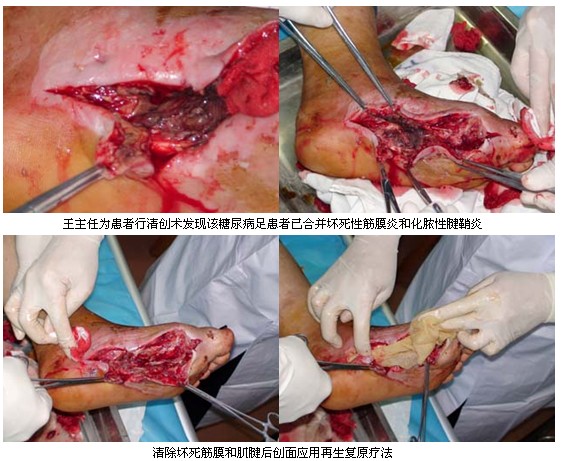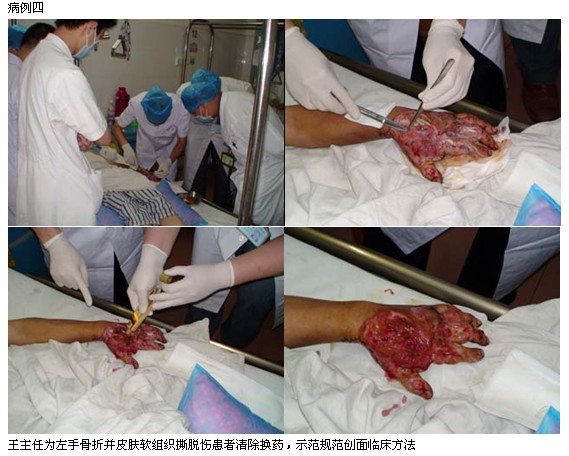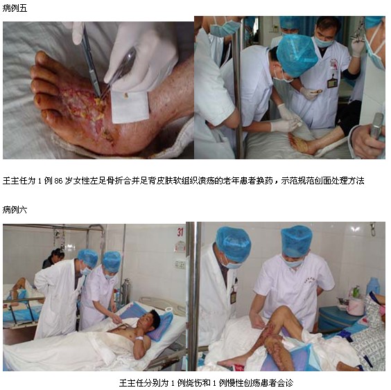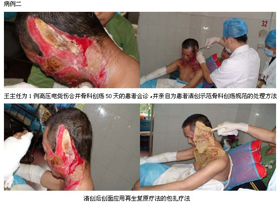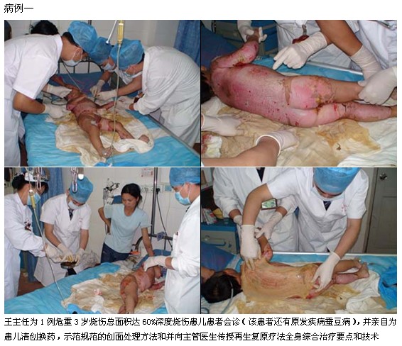 2011年5月6日~5月16日以來,中國中西醫(yī)結合學會燒傷專業(yè)委員會常委、中國燒傷創(chuàng)瘍雜志社副總編輯、北京美寶燒傷創(chuàng)瘍研究所副所長,臨床研究部主任王洪生研究員應邀在百忙當中晝夜兼程三下廣西來賓市人民醫(yī)院骨科燒傷整形外科,為在該醫(yī)院骨科、燒傷整形科住院的1例危重小兒大面積深度燒傷及高壓電燒傷并骨科創(chuàng)瘍、糖尿病足等危重患兒及難愈性創(chuàng)面會診,指導臨床救治工作,并為高壓電燒傷、骨科創(chuàng)瘍、糖尿病足等難愈性創(chuàng)面患者進行示范手術,在王主任連續(xù)跟蹤指導下,該醫(yī)院骨科、燒傷整形外科的專家和主管醫(yī)生已基本掌握了應用再生復原療法治療小兒大面積深度燒傷、高壓電燒傷、骨科創(chuàng)瘍、糖尿病足等難愈性創(chuàng)面的臨床規(guī)范的創(chuàng)面處理方法和大面積深度燒傷全身綜合治療技術,至此,該醫(yī)院骨科燒傷整形科已將再生復原療法全面應用于大面積燒傷和各類骨科創(chuàng)瘍和糖尿病足等難愈性創(chuàng)面患者的臨床治療中。