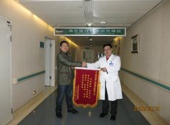 為感謝湘雅三醫(yī)院燒傷科開(kāi)拓創(chuàng)新,大膽采用人體再生復(fù)原技術(shù)根治肛瘺術(shù)后感染創(chuàng)面,患者周某特制錦旗兩面分別送給賀全勇教授和郭夢(mèng)茜醫(yī)生。