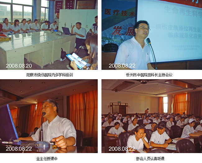 2008年8月22日,金黨軍主任和靳偉經(jīng)理又在忻州市中醫(yī)院對全院的臨床醫(yī)護人員做了“燒傷皮膚原位再生醫(yī)療技術(shù)學習培訓”,參會人員140多人。忻州市中醫(yī)院是綜合實力較強的三級乙等醫(yī)院,該院以前只在小面積病人方面應(yīng)用燒傷皮膚原位再生醫(yī)療技術(shù),經(jīng)過這次培訓,該院醫(yī)教科田科長說,爭取在以后工作中能夠多次合作,在條件允許時候我們把燒傷和創(chuàng)瘍、創(chuàng)傷、潰瘍病人單獨成立一個特色???。會后金黨軍主任對外科、皮膚醫(yī)護人員提出的問題做了詳細的講解,大家表示通過這次講座受益匪淺,增長了不少新的知識,真正了解了我國皮膚原位再生醫(yī)學的發(fā)展,感謝徐榮祥教授研究創(chuàng)立了造?;颊叩暮眉夹g(shù),感謝中西醫(yī)結(jié)合學會燒傷專業(yè)委員會金主任帶來的新知識。并希望中國中西醫(yī)學會燒傷專業(yè)委員會和北京美寶燒傷創(chuàng)瘍研究所繼續(xù)給予支持幫助,進一步加強合作。通過講座,學習交流等形式把徐榮祥教授創(chuàng)立的生命再生科學及皮膚原位再生修復(fù)理論融會貫通傳播到每個醫(yī)護人員中,從思想上,概念上認識再生醫(yī)療技術(shù)的創(chuàng)立與發(fā)展,用最適宜基層應(yīng)用的技術(shù)造福廣大燒傷、創(chuàng)瘍,創(chuàng)傷、潰瘍等多發(fā)病常見病患者。促進中西醫(yī)臨床結(jié)合的更快發(fā)展。