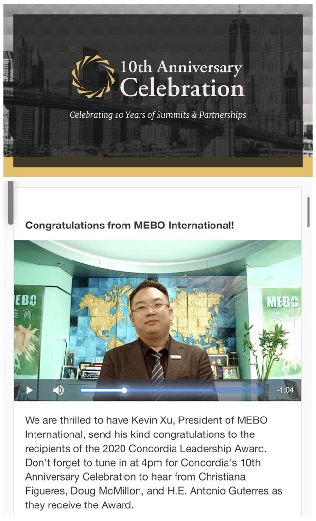 美寶集團(tuán)董事局主席徐鵬出席Concordia十年慶典并應(yīng)邀為聯(lián)合國(guó)秘書長(zhǎng)古特雷斯等人致賀詞