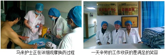 乘著5月南通國際燒傷學(xué)術(shù)會議的勝利閉幕的東風(fēng),通過美寶在馬來西亞當?shù)氐暮献骰锇?,美寶國際市場集團以及中國中西醫(yī)結(jié)合學(xué)會燒傷專業(yè)委員會相關(guān)領(lǐng)導(dǎo)及同志的積極聯(lián)絡(luò)和籌備,馬來西亞方面再次派遣3名護士分別是Ms. Hui Ting, Ms. Norli和Ms. Izliana,計劃于6月30日-7月10日來到四川省雅安市人民醫(yī)院燒傷科系統(tǒng)地學(xué)習(xí)再生醫(yī)療技術(shù)創(chuàng)面治療的相關(guān)技能。2012年6月30日順利抵達四川成都,四川省燒傷委員會辦公室主任邱衛(wèi)東熱情地接待了來訪客人,并對相關(guān)培訓(xùn)事宜進行了安排,同時也為來訪客人介紹四川省燒傷委員會近些年的發(fā)展情況。