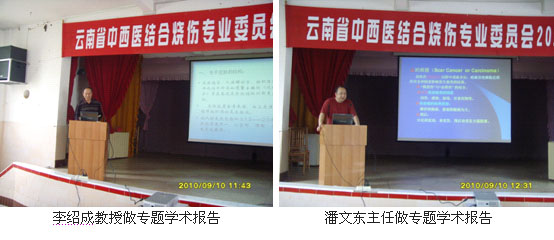 會議期間,云南省中西醫(yī)結(jié)合學(xué)會燒傷專委會主委、昆明醫(yī)學(xué)院第二附屬醫(yī)院李紹成教授、開遠(yuǎn)59解放軍中心醫(yī)院燒傷整形科主任潘文東副主任醫(yī)師、云南大里祥云縣人民醫(yī)院外科主任李紹昌主任醫(yī)師等專家分別以“燒傷診斷與治療中的諸多問題之我見”、“疤痕癌的防治”、“壓力性潰瘍防治新進(jìn)展”等課題進(jìn)行了大會專題學(xué)術(shù)講座和學(xué)術(shù)交流。